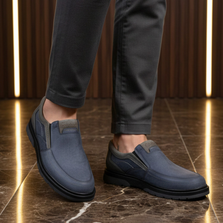 کفش چرم مردانه اسپرت کد SP220BL رنگ آبی
