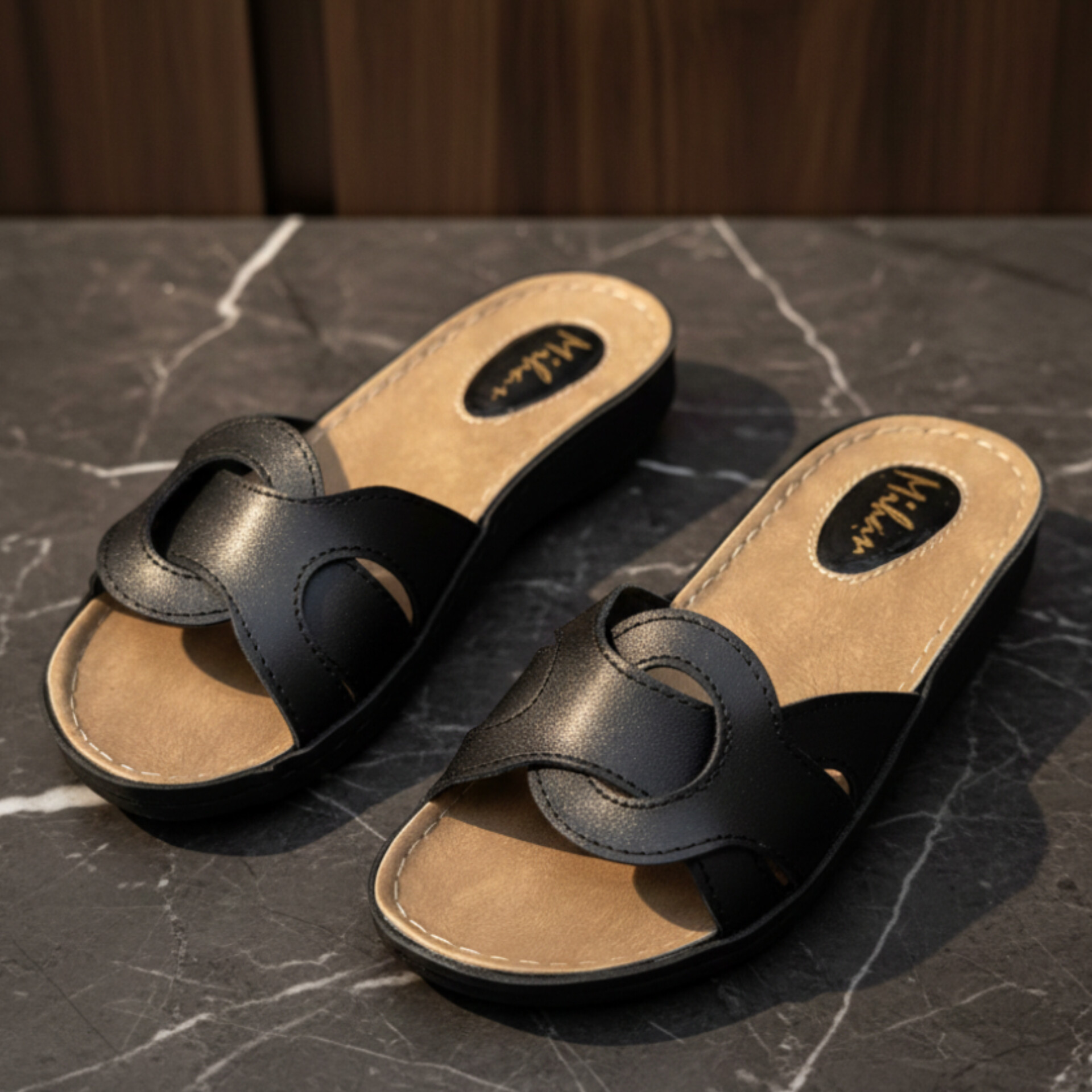 دمپایی رو فرشی طبی زنانه دمپایی فوق راحت سبک و بسیار نرم وشیک می باشد که جنس رویه چرم و جنس زیره پی یو نرم و ضد ترک و کفی اشبالت طبیعی و طبی که به صورت کف دوخت به زیره وصل شده است