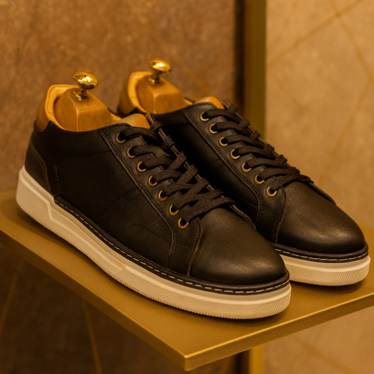 کفش چرم طبیعی با استایل اسپرت و نیمه رسمی و سبک ونس می باشد. که جنس رویه آن تمام چرم گاوی برنیش پلیشی درجه 1 مات واکس خور و جنس آستر تمام چرم طبیعی بزی میشن ضد تعریق با زیره ترمو خارجی ترک آنتی شوک و ضد سایش می باشد .که به صورت پرس مستقیم و دوردوخت به رویه متصل شده است این کفش دارای کفی طبی تمام چرم بزی آنتی باکتریال می باشد .این کفش تمام چرم دستدوز تبریز بوده و از کیفیت و دوام بسیار بالایی برخوردار است .رنگ این کفش مشکی سفید می باشد. برند معتبر و پرفروش قالب این کفش ترک و استاندارد است اگر پای پنجه پهن داریدسایز خودتان را انتخاب کنید واگر پای نرمال و لاغر دارید یک سایز کوچکتر از سایز خودتان انتخاب فرمایید