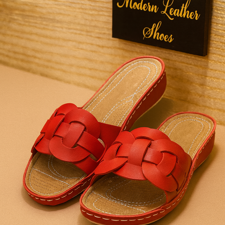 کفش دمپایی چرم زنانه کد DP023RD رنگ قرمز