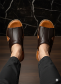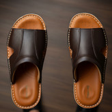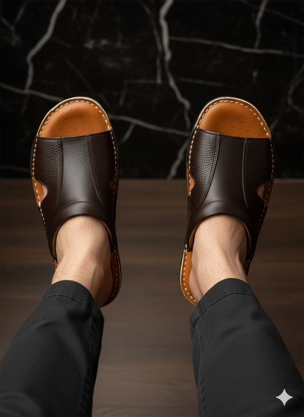 صندل چرمی مردانه کد SD034BR رنگ قهوه‌ای