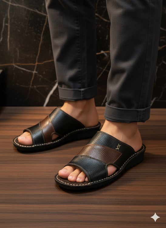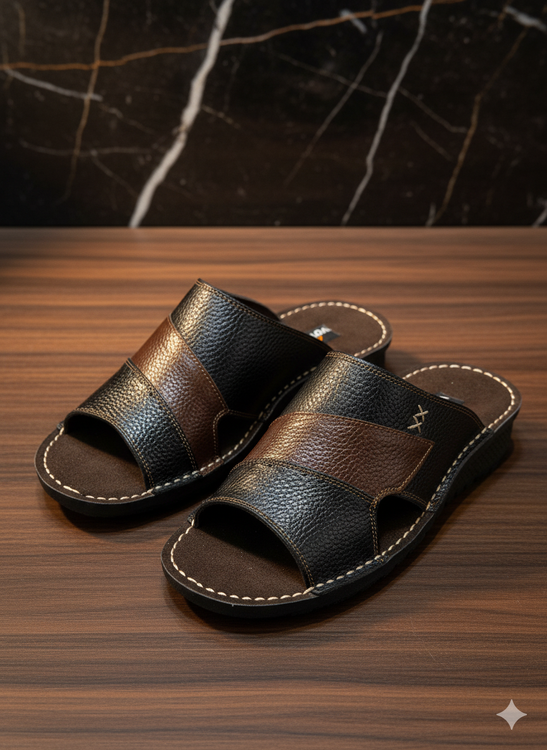 صندل چرم مردانه کد SD031BK رنگ مشکی