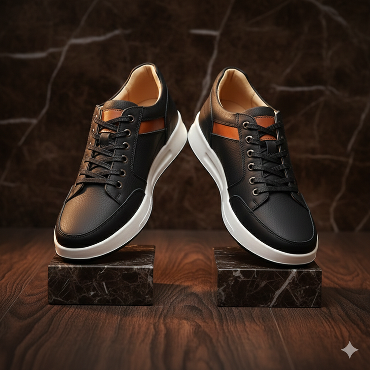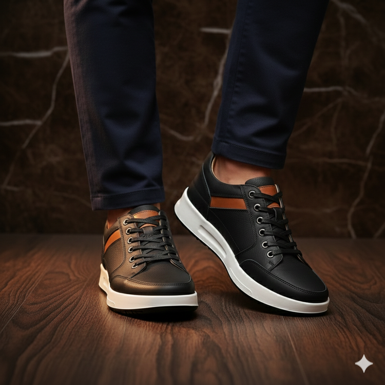 ظاهری شیک و بروز با استایل اسپرت و نیمه رسمی قابل ست با انواع شلوارهای جین و کتان و پارچه ای اسپرت . ترکیب رنگی کفش رنگ جذاب مشکی و عسلی می باشد.