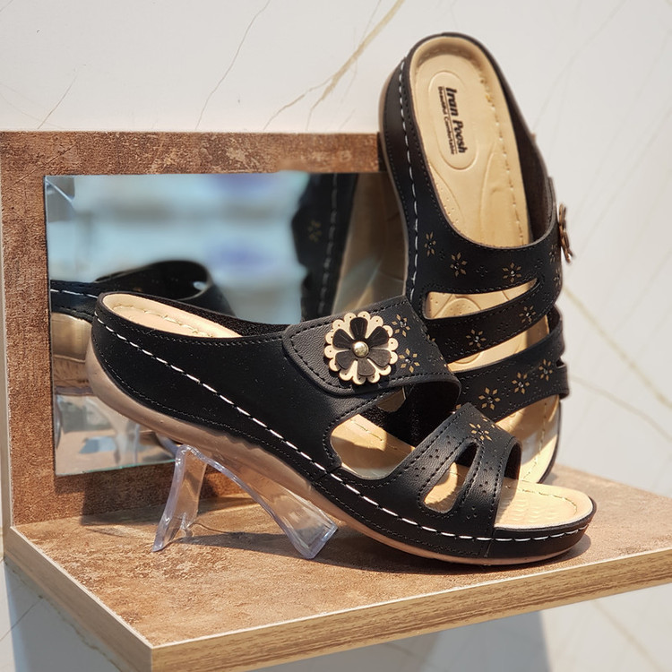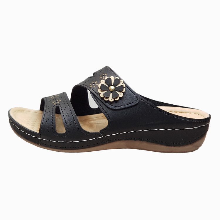 دمپایی چرم زنانه کد DP013BK رنگ مشکی