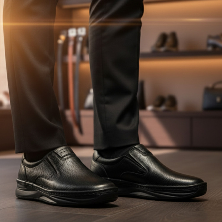 کفش چرم مردانه طبی کد TB031BK رنگی مشکی