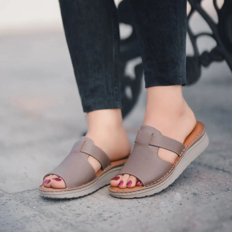 کفش دمپایی چرم زنانه کد DP038BR رنگ قهوهای