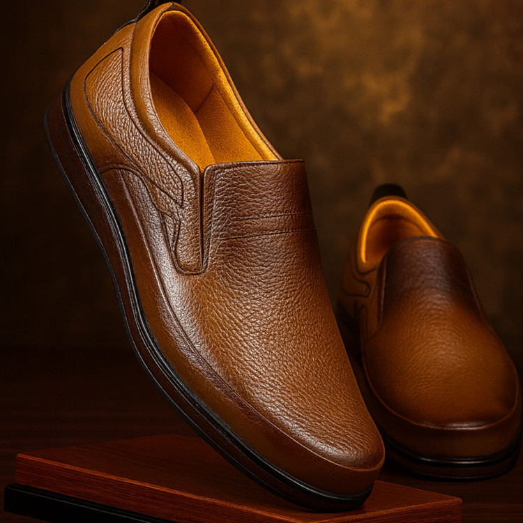 کفش چرم مردانه طبی کد TB053TN رنگ عسلی