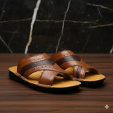 کفش صندل چرم مردانه کد SD019TN رنگ عسلی