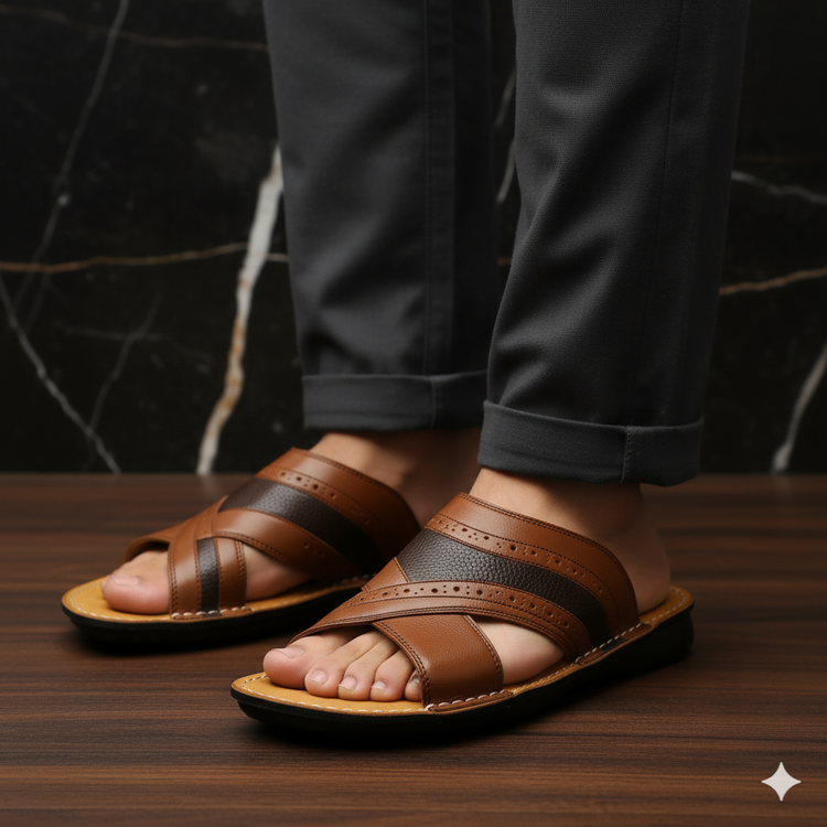 کفش صندل چرم مردانه کد SD019TN رنگ عسلی
