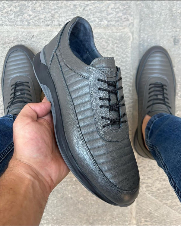 کفش چرم مردانه اسپرت کد SP231GR رنگ طوسی