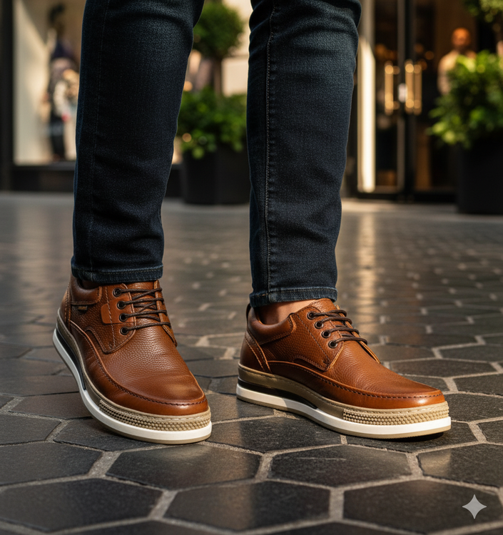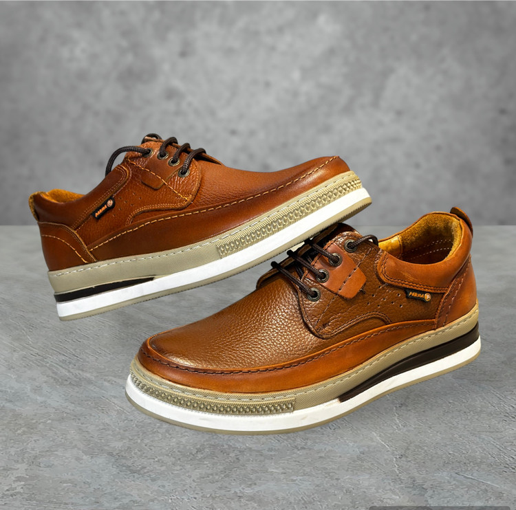 کفش چرم طبیعی و طبی روزمره که جنس رویه این کفش چرم طبیعی گاوی درجه 1 فلوتر و شرانگ و جنس آستر چرم طبیعی بزی ضد تعریق و جنس زیره ترمو آنتی شوک و ضد سایش عطر دار ایتالیا که به صورت دستدوز و دور دوز به به رویه متصل شده است و جنس کفی این کفش مموری فوم با رویه چرم طبیعی بزی آتی باکتریال و طبی با محافظ پاشنه می باشد . این کفش تمام چرم طبیعی بوده و از کیفیت و دوخت و دوام بسیار بالایی برخوردار است و همچنین صادراتی می باشد.برند معتبر و پرفروش . قالب کفش ترک و بزرگ است یک سایز کوچکتر از سایز تون انتخاب فرمایید