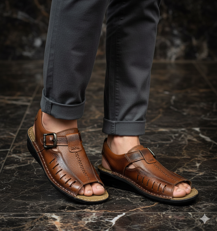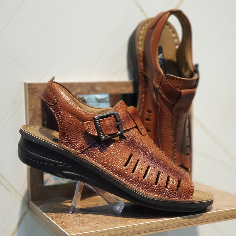کفش صندل چرم مردانه کد SD018TN رنگ عسلی
