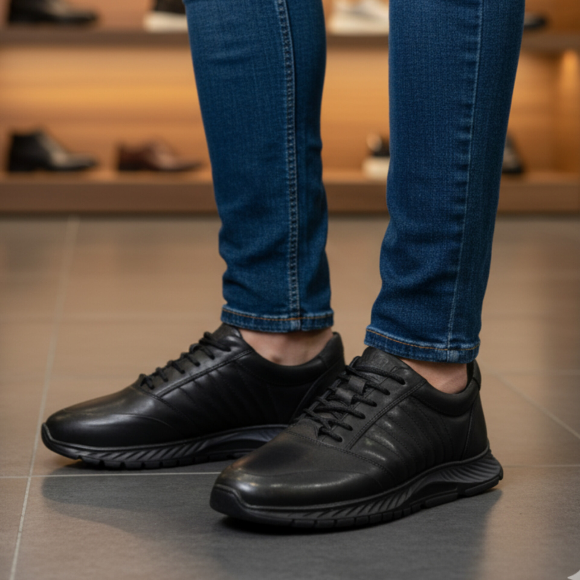 کفش چرم مردانه اسپرت کد SP083BK رنگی مشکی