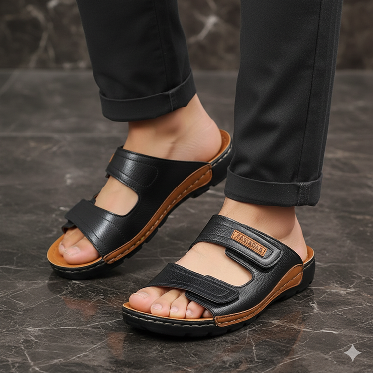 صندل فوق راحت و طبی و نرم قابل استفاده روزمره بیرن و روی فرش با جنس رویه پشت چرم فلوتر و جنس کف اشبالت طبیعی طبی و زیره پی یو نرم و ضد ترک که به صورت کف دوخت و دور دوخت به رویه متصل شده است رویه این صندل به وسیله 2عدد چسبه مقاومی که تعبیه شده قابل تنظیم می باشد تا رویه پارا با اندازه دلخواه خود تنظیم کنید . این صنل از کیفیت بسیار بالایی برخوردار و صادراتی میباشدبرند معتبر پرفروش قالب استاندارد است سایز خودتان را انتخاب فرمایید