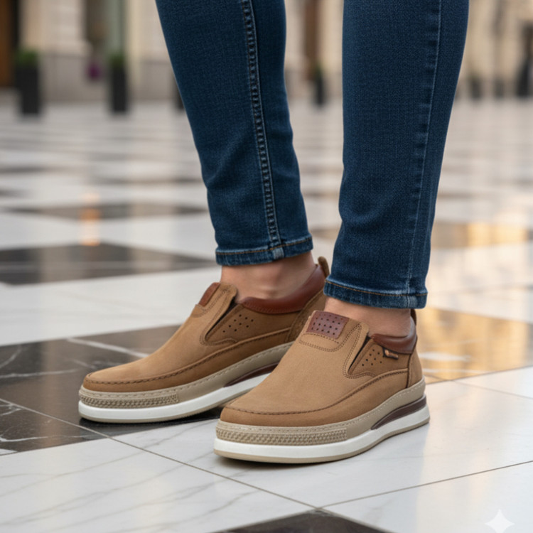 کفش چرم مردانه اسپرت کد SP208CF رنگ نسکافه ای