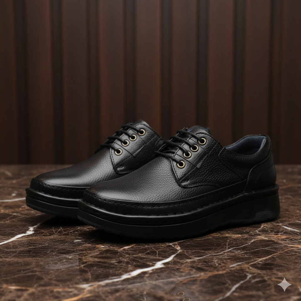 کفش چرم مردانه طبی کد TB024BK رنگی مشکی