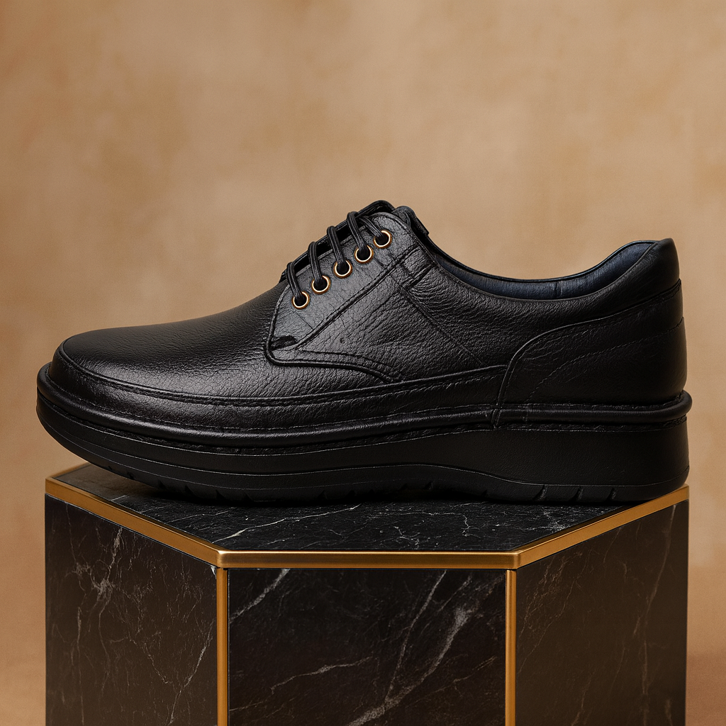 کفش چرم مردانه طبی کد TB024BK رنگی مشکی