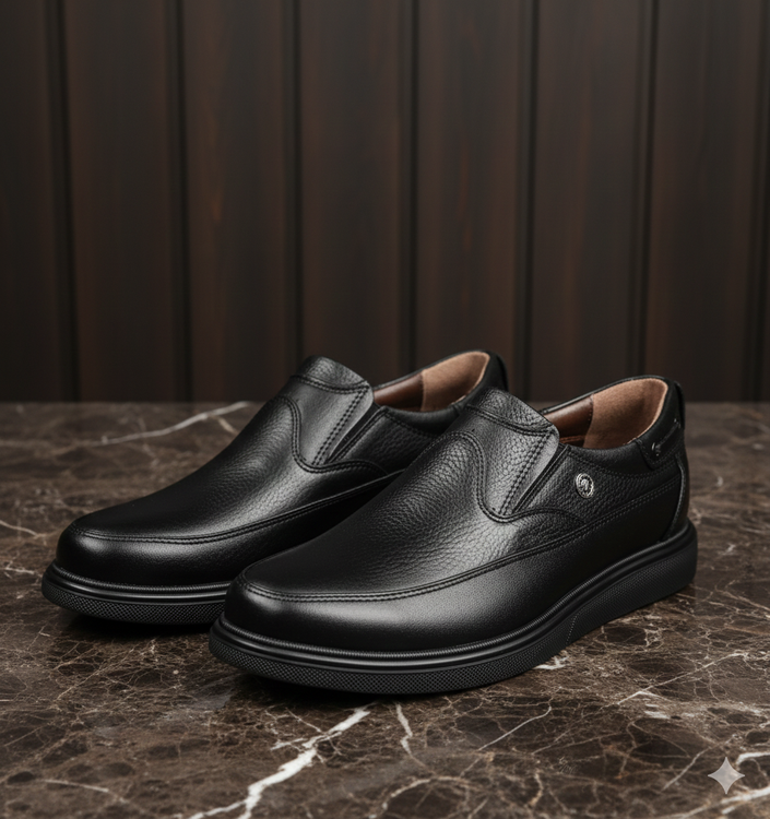 کفش چرم مردانه طبی کد TB023BK رنگی مشکی