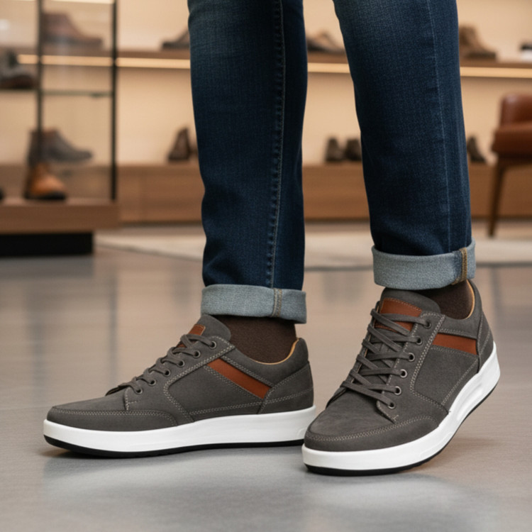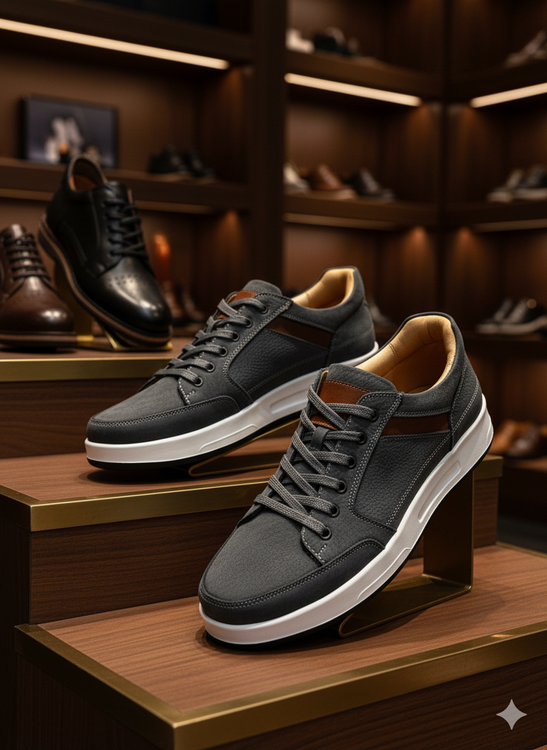 ظاهری شیک و بروز بااستایل اسپرت و نیمه رسمی قابل ست با انواع شلوارهای جین و کتان و پارچه ای اسپرت . ترکیب رنگ کفش رنگ جذاب طوسی و عسلی می باشد.