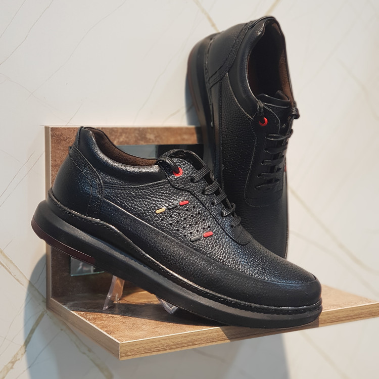 کفش چرم مردانه اسپرت کد SP073BK رنگی مشکی