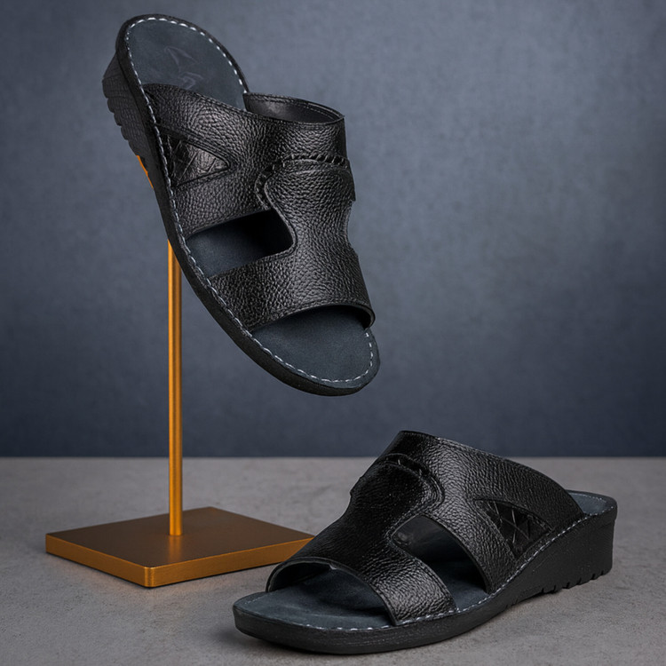 کفش صندل چرم مردانه کد SD008BK رنگ مشکی
