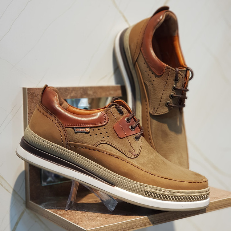 کفش چرم مردانه اسپرت کد SP207CR رنگ خاکی