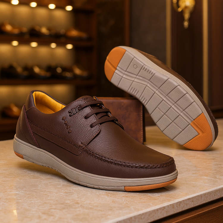 کفش چرم مردانه طبی کد TB066BR رنگ قهوه ای