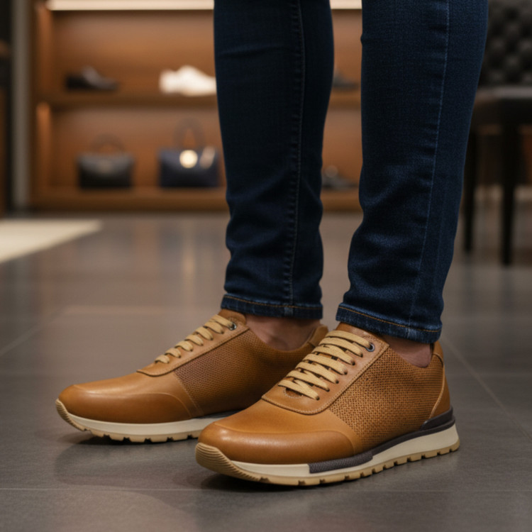 کفش چرم مردانه اسپرت کد SP155TN رنگ عسلی