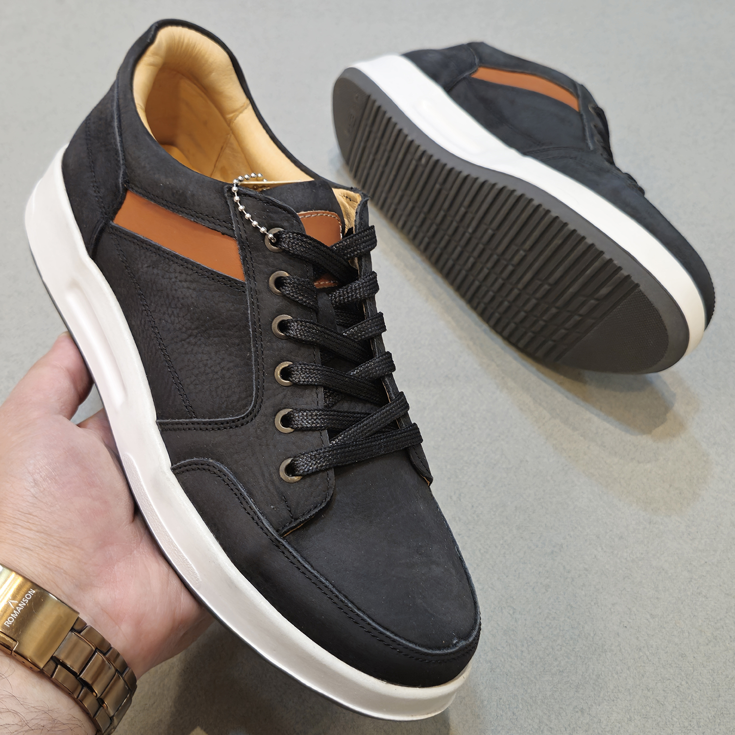 کفش تمام چرم طبیعی با استایل اسپرت و نیمه رسمی می باشد. که جنس رویه آن تمام چرم گاوی حوله ای هورس و جنس آستر تمام چرم طبیعی بزی ضد تعریق با زیره ترمو tpu خارجی آنتی شوک و ضد سایش می باشد .که به صورت تزریق و پرس مستقیم به رویه متصل شده است این کفش دارای کفی طبی تمام چرم بزی آنتی باکتریال می باشد .این کفش تمام چرم دستدوز تبریز بوده و از کیفیت و دوام بسیار بالایی برخوردار است . برند معتبر و پرفروش . قالب این کفش ترک بوده و بزرگ می باشد. اگر پای پنجه پهن داریدسایز خودتان انتخاب کنید اگر پای نرمال و لاغر دارید یک سایز کوچکتر از سایز خودتان انتخاب فرمایید