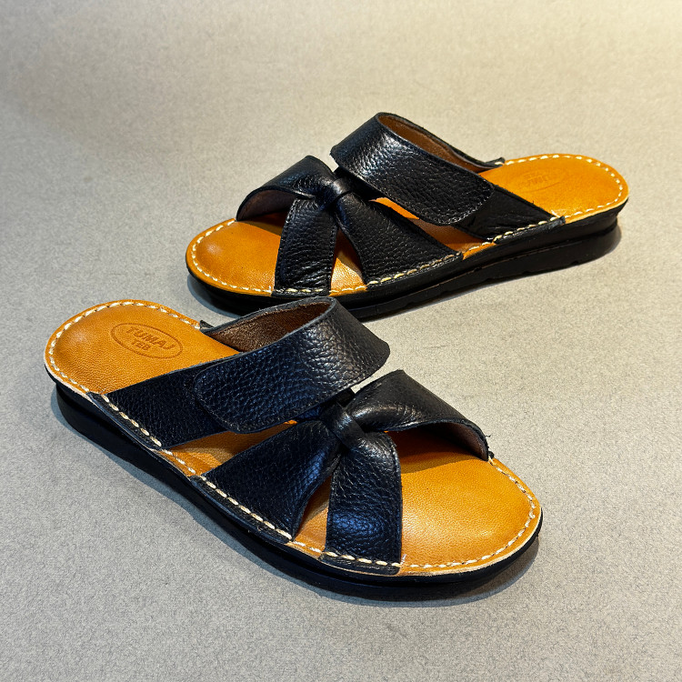 دمپایی طبی تمام چرم طبیعی فلاور دمپایی زنانه با سبک راحتی و اسپورت که جنس رویه آن تمام چرم طبیعی گاوی میلینگ درجه 1 با رویه چسبی و قابل تنظیم و جنس زیره آن pu نرم و طبی فنری خارجی دوردوخت و کفی آن از جنس eva مموری فوم طبی با روکش چرم بزی ضد تعریق می باشد . این صندل تمام دستدوز تبریز بوده و کاملا طبی می باشد و برای پا درد و زانو درد و کمردرد و انواع بیماری های پاشنه مناسب است . این دمپایی تمام چرم طبیعی بوده و از کیفیت بسیار بالایی برخوردار است و صادراتی می باشد .. رنگ این صندل مشکی می باشد .قالب این دمپایی کاملا استاندارد می باشد .سایز خودتان را انتخاب فرمایید