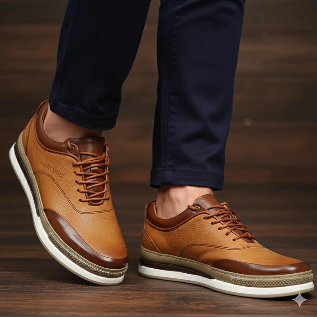 کفش چرم مردانه اسپرت کد SP149TN رنگ عسلی