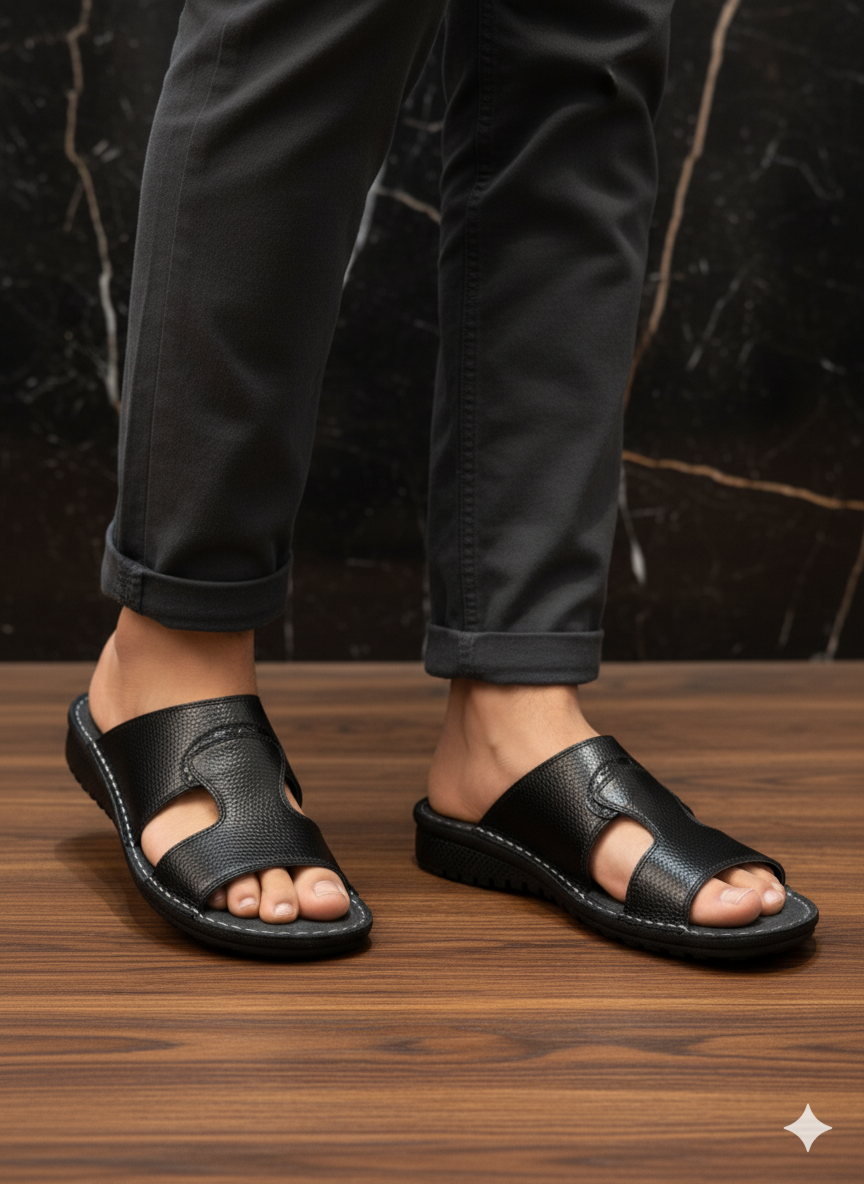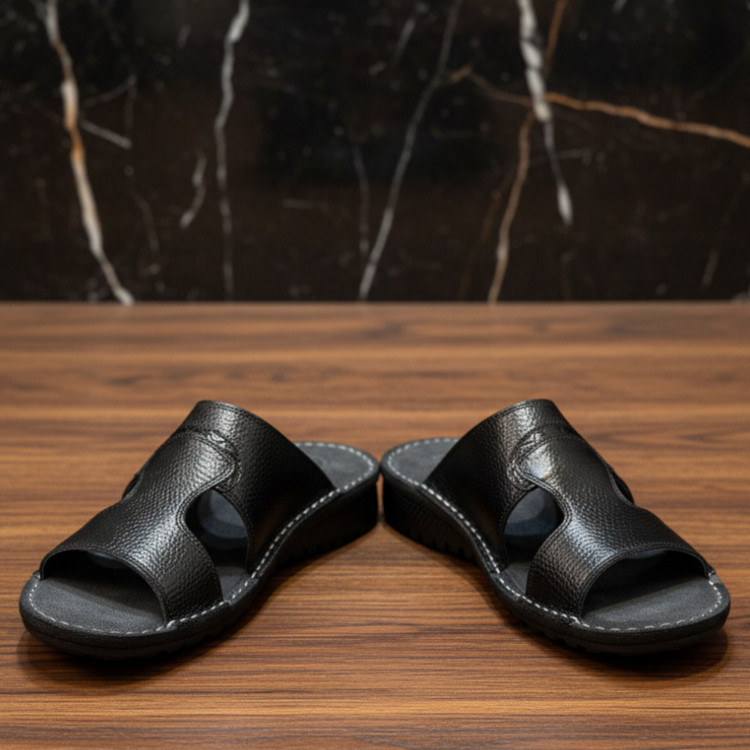 کفش صندل چرم مردانه کد SD005BK رنگ مشکی