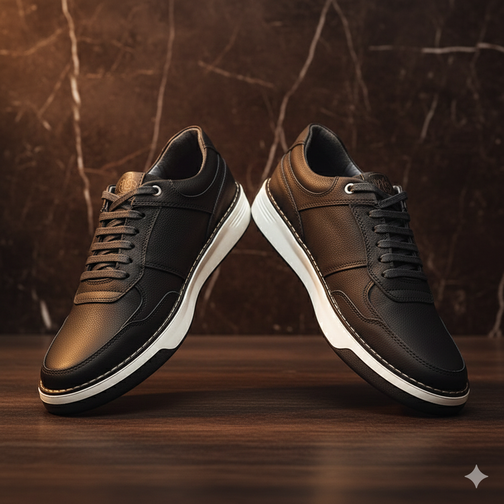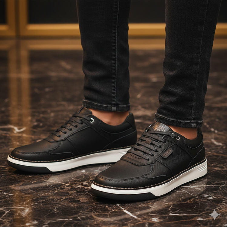 کفش تمام چرم طبیعی دستدوز با استایل اسپورت و کژوال باجنس رویه تمام چرم گاوی درجه 1 هورس با رنگ زیبای مشکی و جنس آستر تمام چرم طبیعی بزی ضد تعریق و آنتی باکتریال و ضد بو و جنس زیره ترمو تی پی یو آنتی شوک و ضد سایش که به صورت کف دوخت مخفی و دور دوخت به رویه به صورت دست دوز متصل شده است . و جنس کفی این کفش تمام چرم بزی ضد تعریق و ضد بو می باشد . این کفش تمام چرم طبیعی از مرغوب ترین چرم گاوی بوده و از کیفیت و دوام بسیار بالایی در کنار شیکی برخوردار و صادراتی می باشد. قالب این کفش ترک بوده و نیم الی 1سایز بزرگ می باشد. اگر پای لاغر و یا نرمال دارید 1سایز کوچکتر انتخاب کرده و اگر پایی با پنجه پهن دارید سایز استاندارد خود را انتخاب کنید .