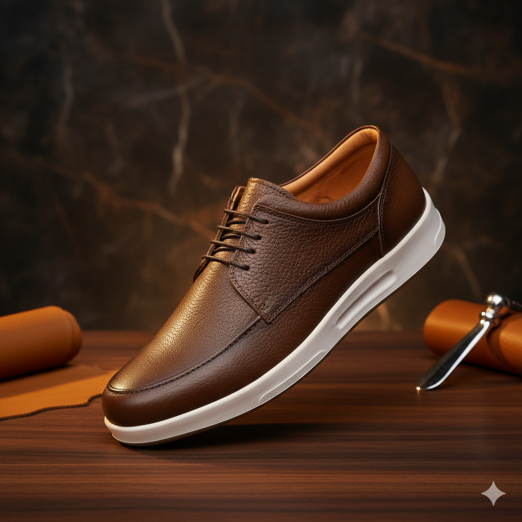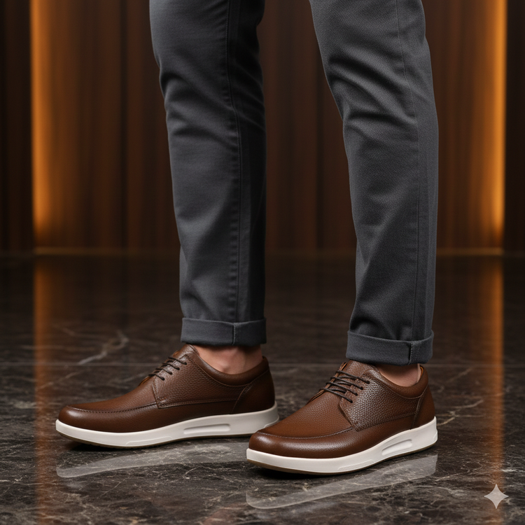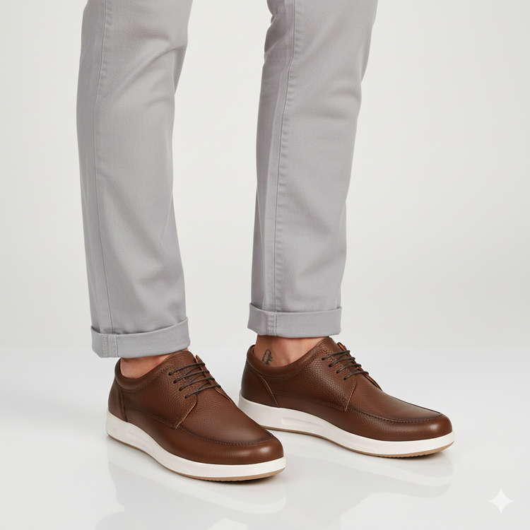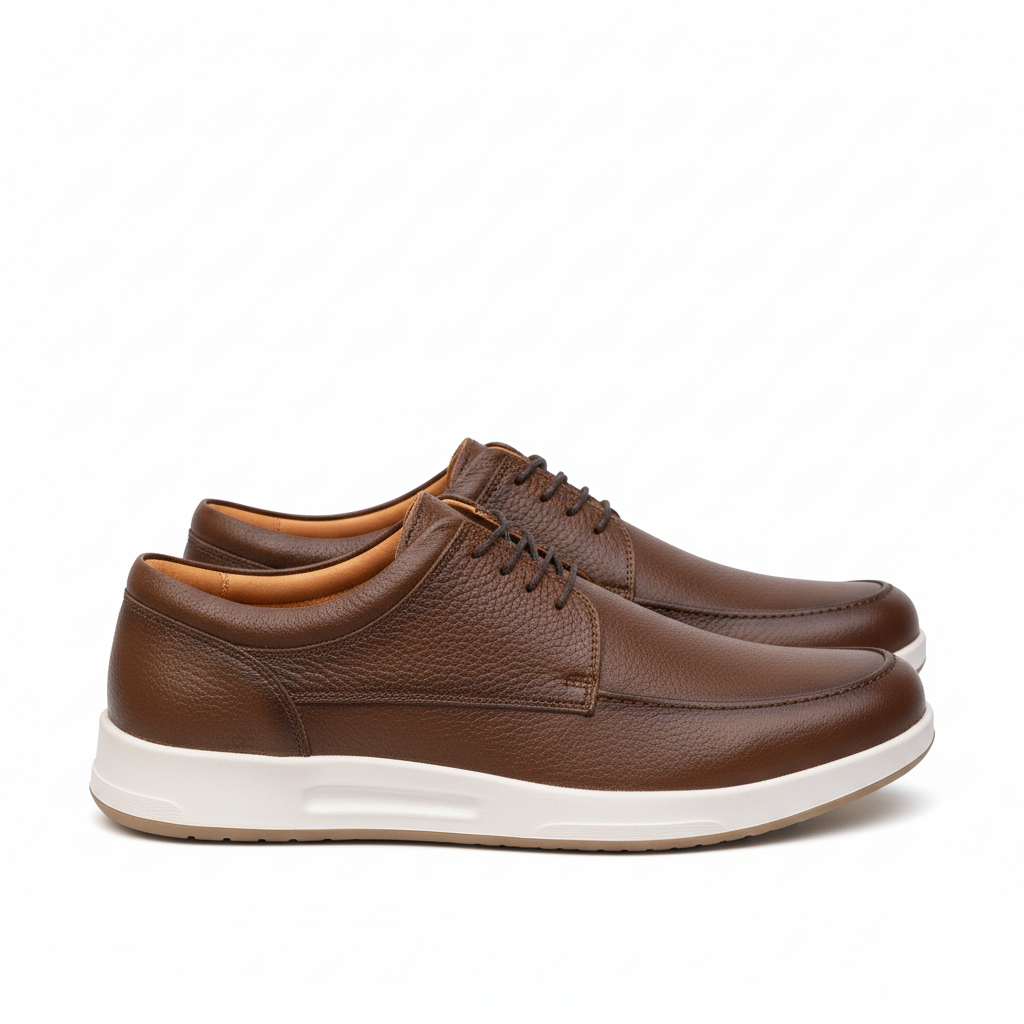 کفش تمام چرم طبیعی کفشی است دستدوز با استایل اسپورت و کژوال که جنس رویه این کفش از چرم طبیعی گاوی درجه 1 و جنس آستر این کفش از تمام چرم بزی ضد تعریق و جنس زیره این کفش ترموتی پی یو خارجی آنتی شوک و ضد سایش که به صورت کف دوخت مخفی و دور دوخت به رویه متصل شده است و جنس کفی این کفش طبی تمام چرم بزی آنتی باکتریال و ضد بو می باشد .این کفش از مرغوب ترین چرم و مواد اولیه ساخته شده است و دارای کیفیت و دوام بی نظیری می باشد و همچنین صادراتی می باشد. قالب این کفش استاندارد بوده و پاخور راحت می باشد. سایز استاندارد خود در کفش چرم را انتخاب کنید.