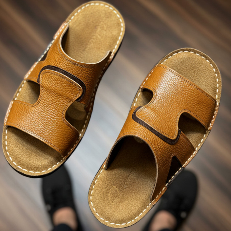 کفش صندل چرم مردانه کد SD016TN رنگ عسلی
