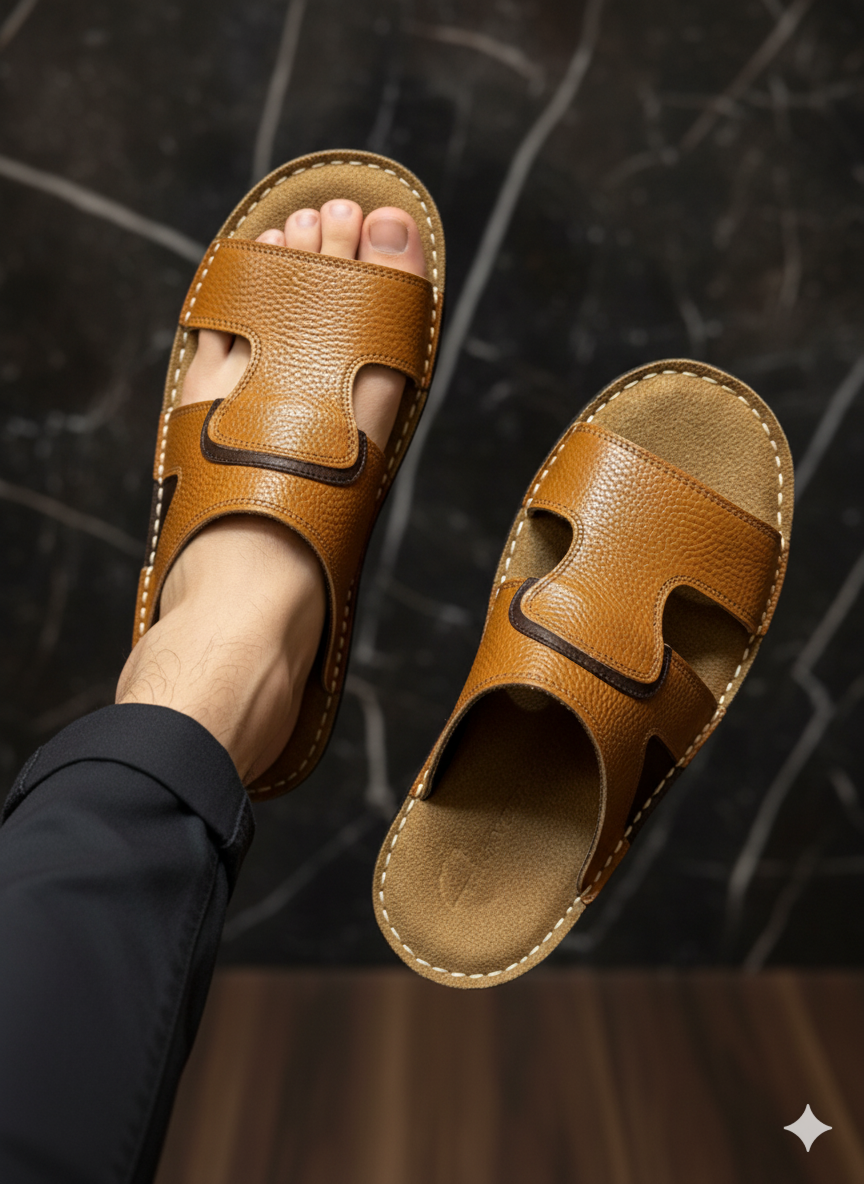 صندل طبی تمام چرم طبیعی صندلی است با رویه تمام چرم گاوی فلوتر درجه 1و آستر تمام چرم طبیعی بزی ضد تعریق و کفی تمام چرم حوله ای گاوی ضد تعریق بسیار نرم و طبی.و برای راحتی پاها در قسمت زیره این صندل از جنس پلی اورتان خارجی طبی استفاده شده است که به صورت دور دوز به رویه چرمی متصل می باشد . این صندل طبی بوده و برای افرادی که از پادرد و زانودرد و آرتروز و حتی دیسک کمر رنج میبرند گزینه مناسبی می باشد .رنگ این صندل عسلی می باشد. قالب این صندل ترک بوده و بزرگ می باشد. اگر پایی با پنجه پهن دارید دقیقا همان سایزی که قبلا استفاده میکردین انتخاب کنید اگر پایی لاغر و یا نرمال دارید یک سایز کوچک تر انتخاب کنید .