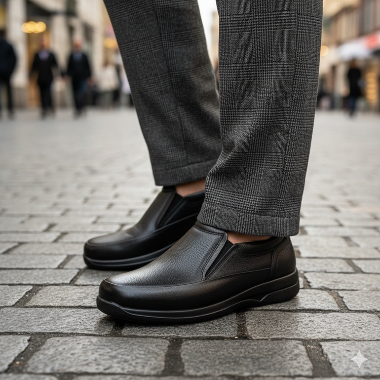 کفش چرم مردانه طبی کد TB013BK رنگی مشکی