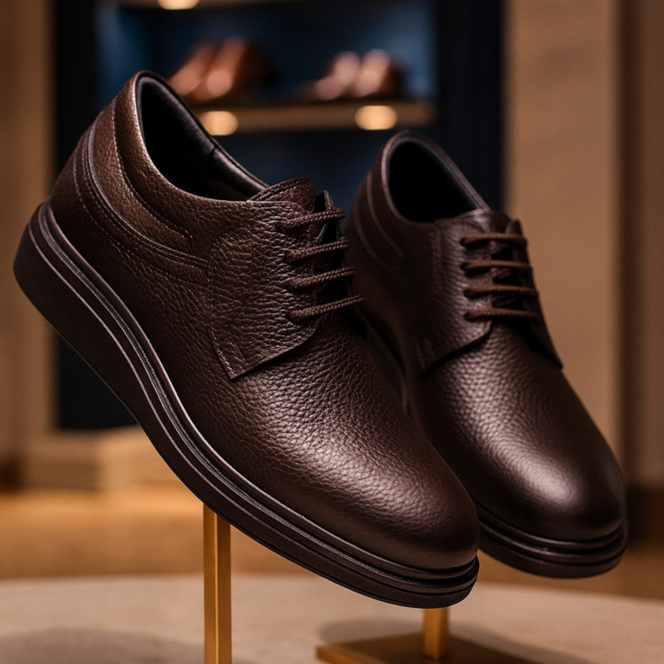 کفش چرم اسپرت مردانه کد SP190BR رنگ قهوه ای از چرم طبیعی گاوی باکیفیت ساخته شده و دارای زیره ترمو ترک طبی است. این کفش چرمی اصل تبریز با طراحی شیک و مدرن، انتخابی عالی برای استفاده روزمره با استایل های اسپرت و نیمه رسمی محسوب میشود.
