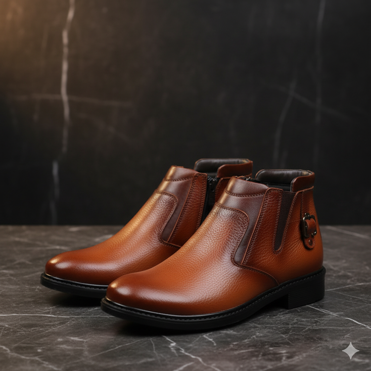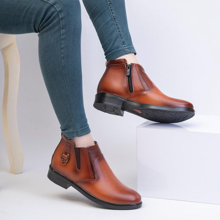 ظاهری شیک و بروز با استایل اسپورت و نیمه رسمی قابل ست با انواع شلوار های جین و کتان و پارچه ای . رویه تمام چرم گاوی شرانگ با رنگ زیبای عسلی افکت دار سایه روشن در سمت بیرونی کفش سگک زیبا و در قسمت داخلی زیپ قرار داده شده است
