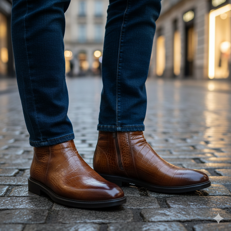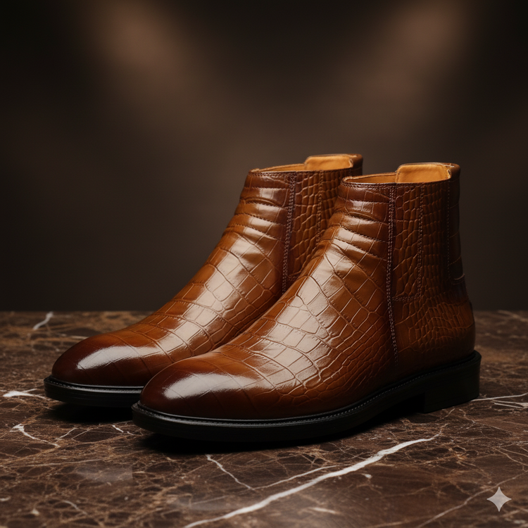نیم بوت چرم مردانه کد NB056TN رنگ عسلی