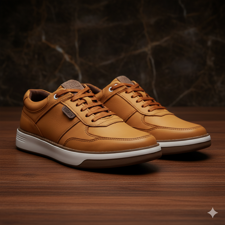 کفش چرم اسپرت مردانه کد SP143TN رنگ عسلی از چرم طبیعی گاوی باکیفیت ساخته شده و دارای زیره ترمو ترک طبی است. این کفش چرمی اصل تبریز با طراحی شیک و مدرن، انتخابی عالی برای استفاده روزمره با استایل های اسپرت و نیمه رسمی محسوب میشود.