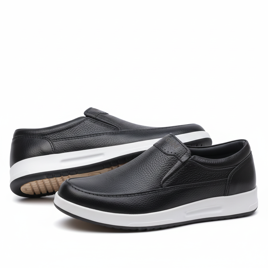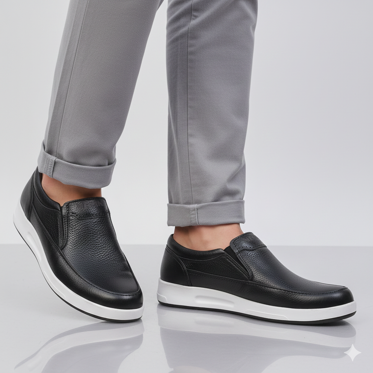 کفش چرم اسپرت مردانه کد SP051BK رنگ مشکی از چرم طبیعی گاوی باکیفیت ساخته شده و دارای زیره ترمو ترک طبی است. این کفش چرمی اصل تبریز با طراحی شیک و مدرن، انتخابی عالی برای استفاده روزمره با استایل های اسپرت و نیمه رسمی محسوب میشود.