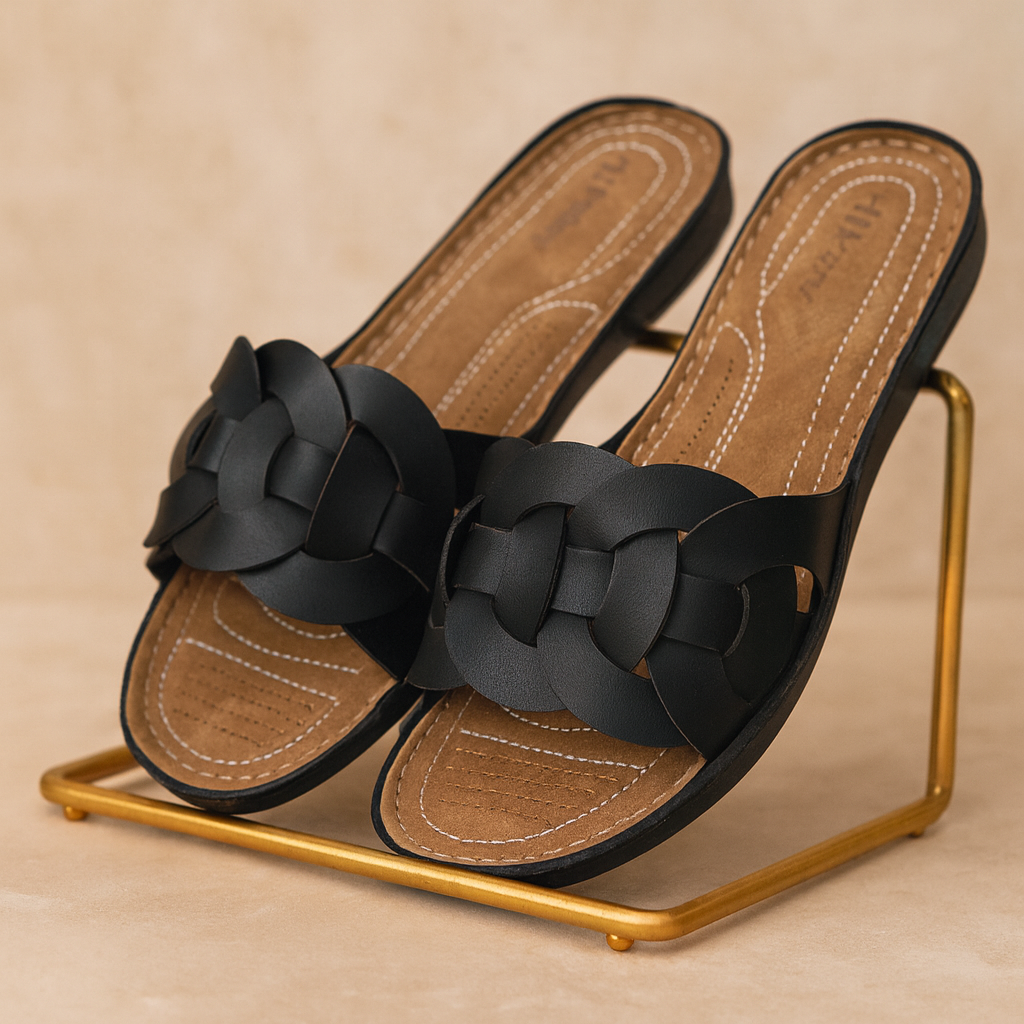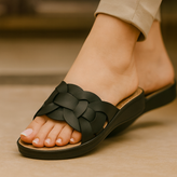 کفش دمپایی چرم زنانه کد DP009BK رنگ مشکی