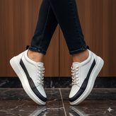 کفش ونس تمام چرم زنانه اسپرت کفشی است با استایل اسپورت و نیمه رسمی ونس که جنس رویه این کفش تمام چرم گاوی میلینگ نرم ضد خط و ترک بوده و جنس آستر تمام چرم طبیعی میشن بزی ضد تعریق می باشد .کفی این کفش طبی بوده و تمام چرم طبیعی میشن بزی می باشد که دارای خاصیت آنتی باکتریال و بو می باشد . زیره این کفش eva خارجی آنتی شوک و دور دوخت می باشد.قالب این کفش ترک بوده و استاندارد و بسیار راحت می باشد. این کفش کار تمام چرم طبیعی بوده و دستدوز تبریز می باشد . و از کیفیت بسیار بالایی برخوردار بوده و صادراتی است . رنگ این کفش سفید طوسی می باشد.برای انتخاب سایز اگر پایی با پنجه پهن دارید سایز استاندارد خود را انتخاب کرده و اگر پایی لاغر یا نرمال دارید یک سایز کوچکتر انتخاب بفرمایید.