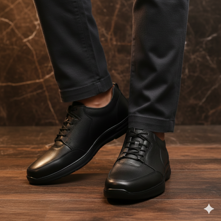 کفش چرم اسپرت مردانه کد SP238BK رنگ مشکی از چرم طبیعی گاوی باکیفیت ساخته شده و دارای زیره ترمو ترک سبک و طبی است. این کفش چرمی اصل تبریز با طراحی شیک و مدرن، انتخابی عالی برای استفاده روزمره با استایل های اسپرت و نیمه رسمی محسوب میشود.