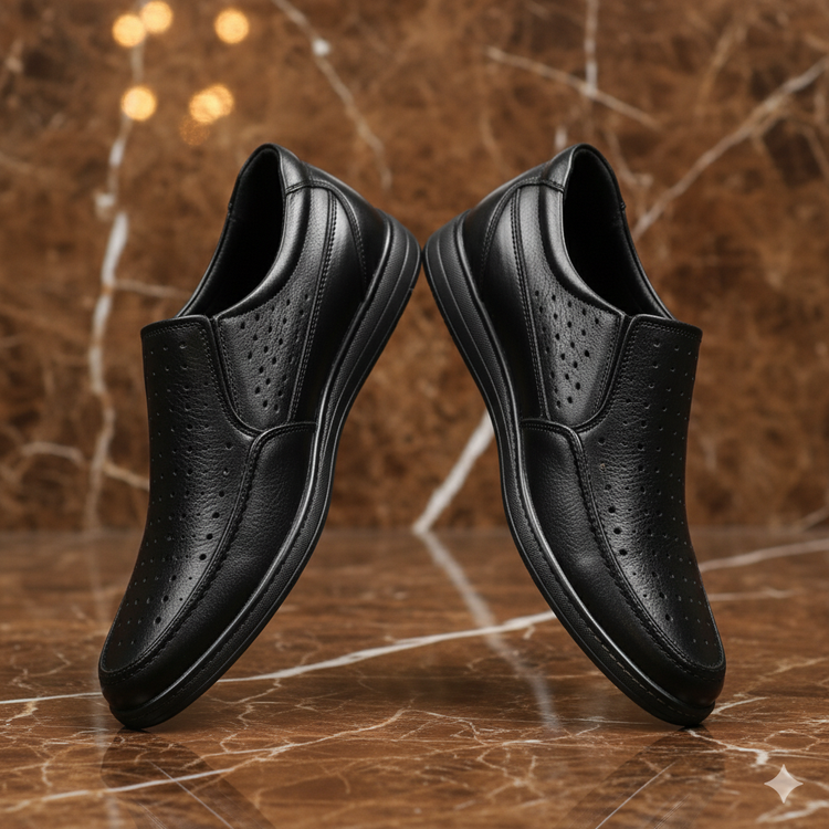 کفش چرم مردانه طبی کد TB010BK رنگی مشکی