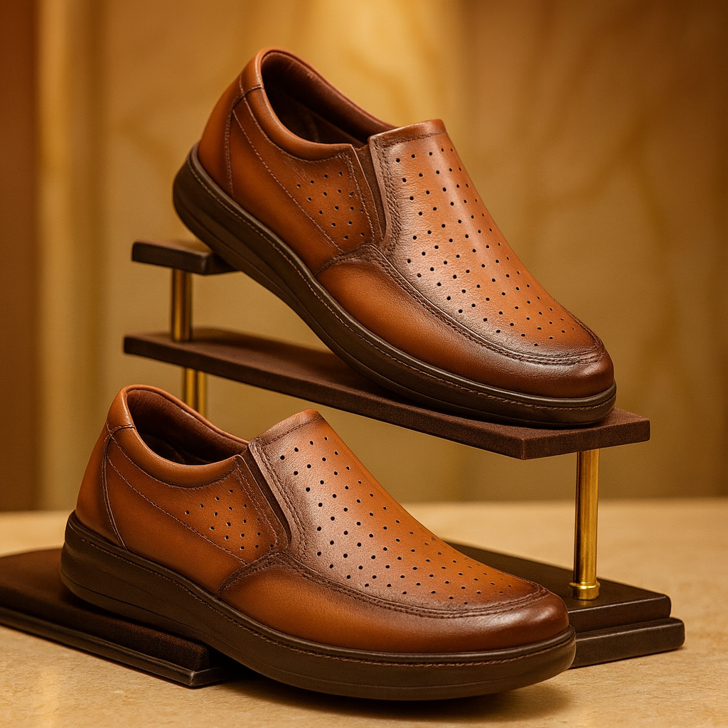 کفش تابستانی چرم دستدوز تبریز جدیدترین مدل طبی اسپرت می باشد . جنس رویه ی کفش تمام چرم طبیعی گاوی میلینگ نرم می باشد و جنس آستر پارچه سوییت ضد تعریق می باشد. و زیره این کفش از جنس پلی اورتان خارجی طبی می باشد که به صورت تزریق مستقیم و دور دوزی و دستدوزی به رویه متصل شده است که باعث بالا رفتن دوام این کفش می شود . از خاصیت های این زیره علاوه بر طبی بود و خاصیت انعطاف پذیر ضد ترک و ضد شکنندگی میباشد . کفی این کفش طبی می باشد . کفش از کیفیت و دوام بسیار بالایی برخوردار بوده و صادراتی میباشد . این کفش کاملا طبی بوده و دارای سوراخ های ریزی روی کفش برای جریان بهتر هوا و جلوگیری از تعریق و جلوگیری از سنگ و ماسه رفتن داخل کفش می باشد. رنگ این کفش عسلی می باشد .قالب این کفش استاندارد بوده و سایز استاندارد خود در کفش های چرم را انتخاب کنید.