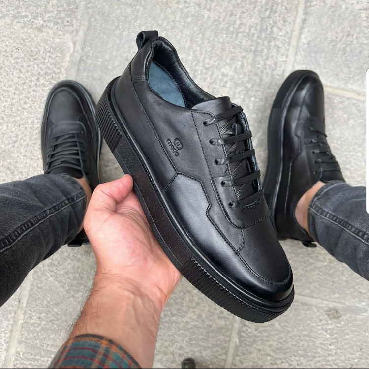 کفش تمام چرم طبیعی دستدوز با استایل اسپورت ونس باجنس رویه تمام چرم گاوی درجه 1 ترکمان پلیشی ابرو بادی دستدوز با رنگ زیبای مشکی که رویه چرم رگه دار می باشد.و جنس آستر تمام چرم طبیعی بزی میشن ضد تعریق و آنتی باکتریال و ضد بو و جنس زیره ترمو تی پی یو آنتی شوک و ضد سایش خارجی ترک می باشد و جنس کفی این کفش تمام چرم بزی ضد تعریق و ضد بو آنتی باکتریال می باشد . این ونس تمام چرم طبیعی از مرغوب ترین چرم گاوی بوده و از کیفیت و دوام بسیار بالایی در کنار شیکی برخوردار و صادراتی می باشد. قالب این کفش ترک بوده و نیم سایز بزرگ است اگر پایی با پنجه پهن دارید سایز استاندارد خود در کفش چرم را انتخاب کنید اگر پایی لاغر و یا نرمال دارید 1سایز کوچک تر انتخاب کنید.