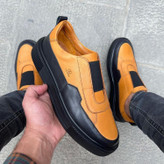 کفش تمام چرم طبیعی دستدوز با استایل اسپورت باجنس رویه تمام چرم گاوی درجه 1 ترکمان پلیشی ابرو بادی وسایه روشن دستدوز که روی نژاد چرم دارای رگه و خط های ریز می باشد و این نژاد و مدل چرم و کفش بوده و ایراد نیست. با رنگ زیبای عسلی و جنس آستر تمام چرم طبیعی بزی میشن ضد تعریق و آنتی باکتریال و ضد بو و جنس زیره pu تی پی یو آنتی شوک و ضد سایش خارجی می باشد و جنس کفی این کفش تمام چرم بزی ضد تعریق و ضد بو می باشد . این ونس تمام چرم طبیعی از مرغوب ترین چرم گاوی بوده و از کیفیت و دوام بسیار بالایی در کنار شیکی برخوردار و صادراتی می باشد. قالب این کفش ترک بوده و نیم سایز بزرگ می باشد اگر پایی با پنجه پهن دارید سایز استاندارد خود در کفش چرم را انتخاب کنید و اگر پایی لاغر و یا نرمال دارید یک سایز کوچکتر انتخاب کنید .