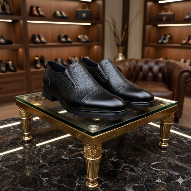 کفش چرم رسمی مردانه کد RS014BK رنگ مشکی از چرم طبیعی گاوی باکیفیت ساخته شده و دارای زیره رابر ترک سبک و طبی است. این کفش چرمی اصل تبریز با طراحی شیک و مدرن، انتخابی عالی برای استفاده رسمی و روزمره و نیمه رسمی محسوب میشود.